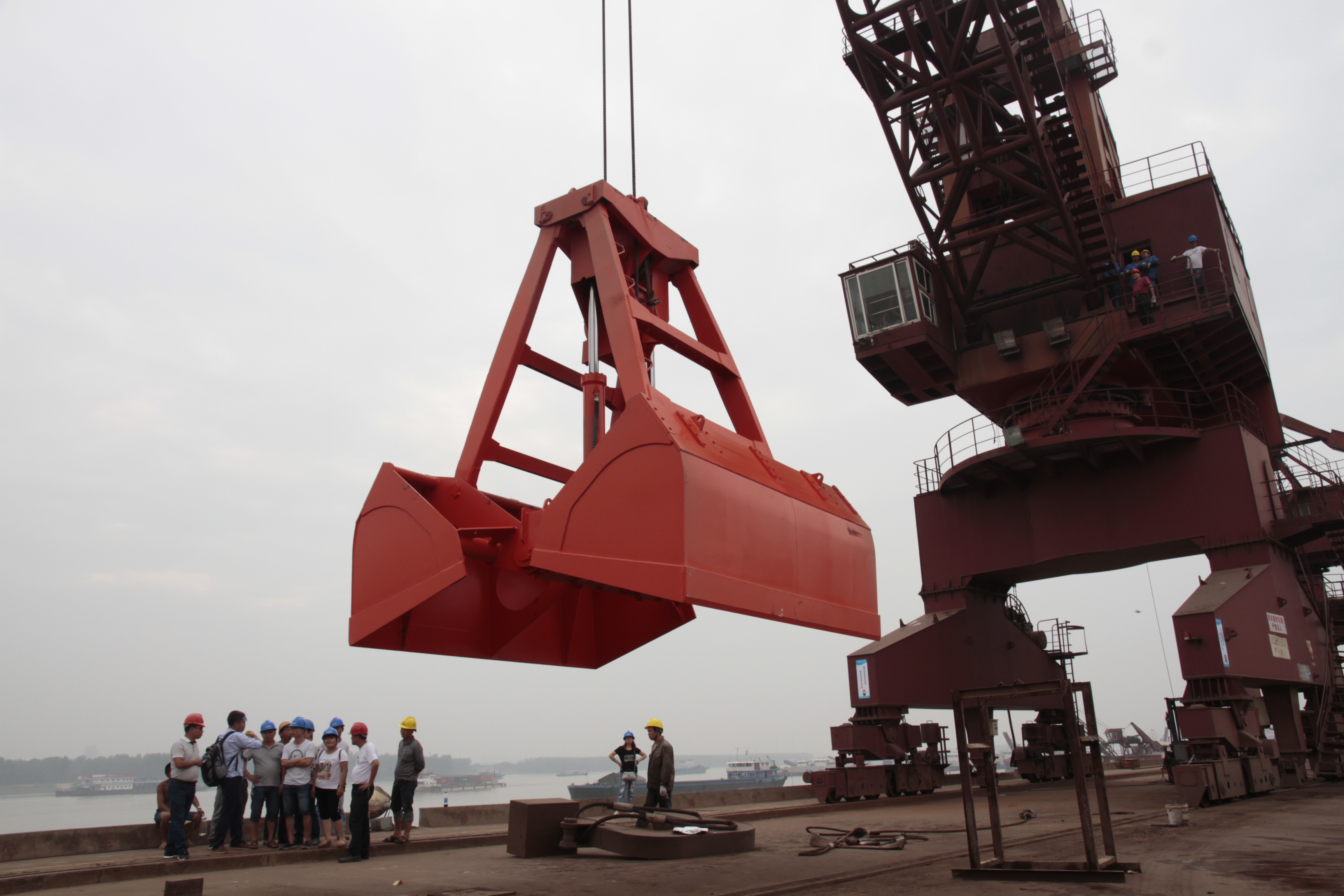 6月20日,長沙新港件雜散貨碼頭4號吊機(jī)旁一個橘紅色斗狀設(shè)備吸引了工作人員的目光,紛紛駐足觀看, 只見4號吊車準(zhǔn)確勾上預(yù)留的吊環(huán)將設(shè)備輕松吊起,旋轉(zhuǎn)吊臂至停泊一旁滿載碎石的貨船上空,放索、抓取、起吊一氣呵成,滿滿一斗十幾噸的碎石就起吊完成,這個“大家伙”卓越的性能給現(xiàn)場的工作人員留下了深刻的印象。 這是長沙新港為適應(yīng)生產(chǎn)需要而采購的25噸6-12m³的無線遙控雙瓣抓斗的試機(jī)現(xiàn)場,也是無線遙控抓斗這一新式散料抓斗首次在省內(nèi)港口生產(chǎn)中投入使用。5月以來,為支持新港三期南片區(qū)建設(shè),長沙新港南片區(qū)散貨碼頭輸送線拆除完畢,二期碼頭散貨壓港嚴(yán)重。件雜散貨生產(chǎn)經(jīng)營形勢嚴(yán)峻,港口完成全年生產(chǎn)經(jīng)營任務(wù)面臨巨大挑戰(zhàn),原有的9號吊已不能滿足生產(chǎn)需要,亟需在4號吊上購置一臺抓斗用于生產(chǎn),而4號吊屬于單鉤起動機(jī),不能適用于普通抓斗,經(jīng)公司辦公會研究報(bào)集團(tuán)審批同意后,決定購置一臺25噸6-12m³無線遙控雙瓣抓斗。 遙控抓斗是一種不需要外界能源,通過司機(jī)手上遙控器控制抓斗上液壓電磁閥在料堆上自動閉合,又能在空中任意位置自動打開的新穎散貨抓斗。它既有繩索式抓斗結(jié)構(gòu)簡單、使用可靠的特點(diǎn),又有動力式抓斗裝卸效率高的特點(diǎn)。零部件采用模塊化設(shè)計(jì),易于維護(hù)及維修,使用簡單,起重機(jī)不需要配備其它輔助裝置,將抓斗掛在吊鉤或集裝箱吊具上就可使用。該設(shè)備的斗容6-12m³,自重9.5噸,額定起重量25噸,它的投入使用,可大大提高長沙新港散貨作業(yè)能力,縮短船舶滯港時間,為客戶提供更高效的裝卸服務(wù),完善港口裝卸功能。 作為湖南省內(nèi)首家使用新型無線遙控抓斗的企業(yè),在集團(tuán)支持下新港公司設(shè)備部門和生產(chǎn)部門前期進(jìn)行了充分的市場了解和實(shí)地考察,經(jīng)過嚴(yán)格的招投標(biāo)程序,最終選購了上海炯圣機(jī)械有限公司生產(chǎn)的設(shè)備。設(shè)備運(yùn)抵港口后,設(shè)備部門和生產(chǎn)部門通力合作迅速安裝到位,并邀請廠家技術(shù)人員進(jìn)行現(xiàn)場教學(xué),保證工作人員及時掌握該設(shè)備的使用及維護(hù)方法,使抓斗在安裝當(dāng)日即形成了生產(chǎn)能力。 今年以來,長沙新港吞吐量節(jié)節(jié)攀升,三期建設(shè)引擎加快,港口協(xié)調(diào)處理運(yùn)營與建設(shè)的關(guān)系,秉持“邊建設(shè)、邊運(yùn)營”的宗旨,在積極推進(jìn)三期工程建設(shè)的同時,狠抓生產(chǎn)不放松,朝著全年生產(chǎn)目標(biāo)的完成不斷邁進(jìn),新式抓斗的投入使用將為港口吞吐量的提升又增添一股強(qiáng)勁動力。