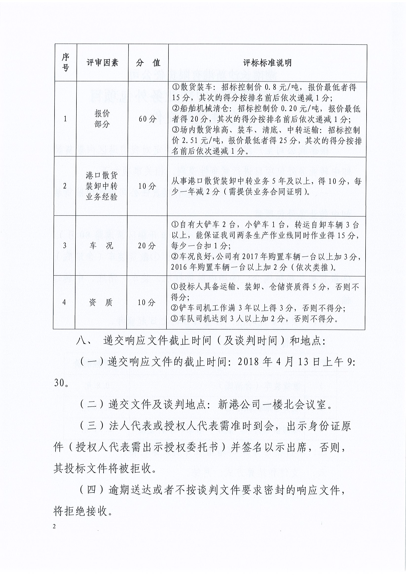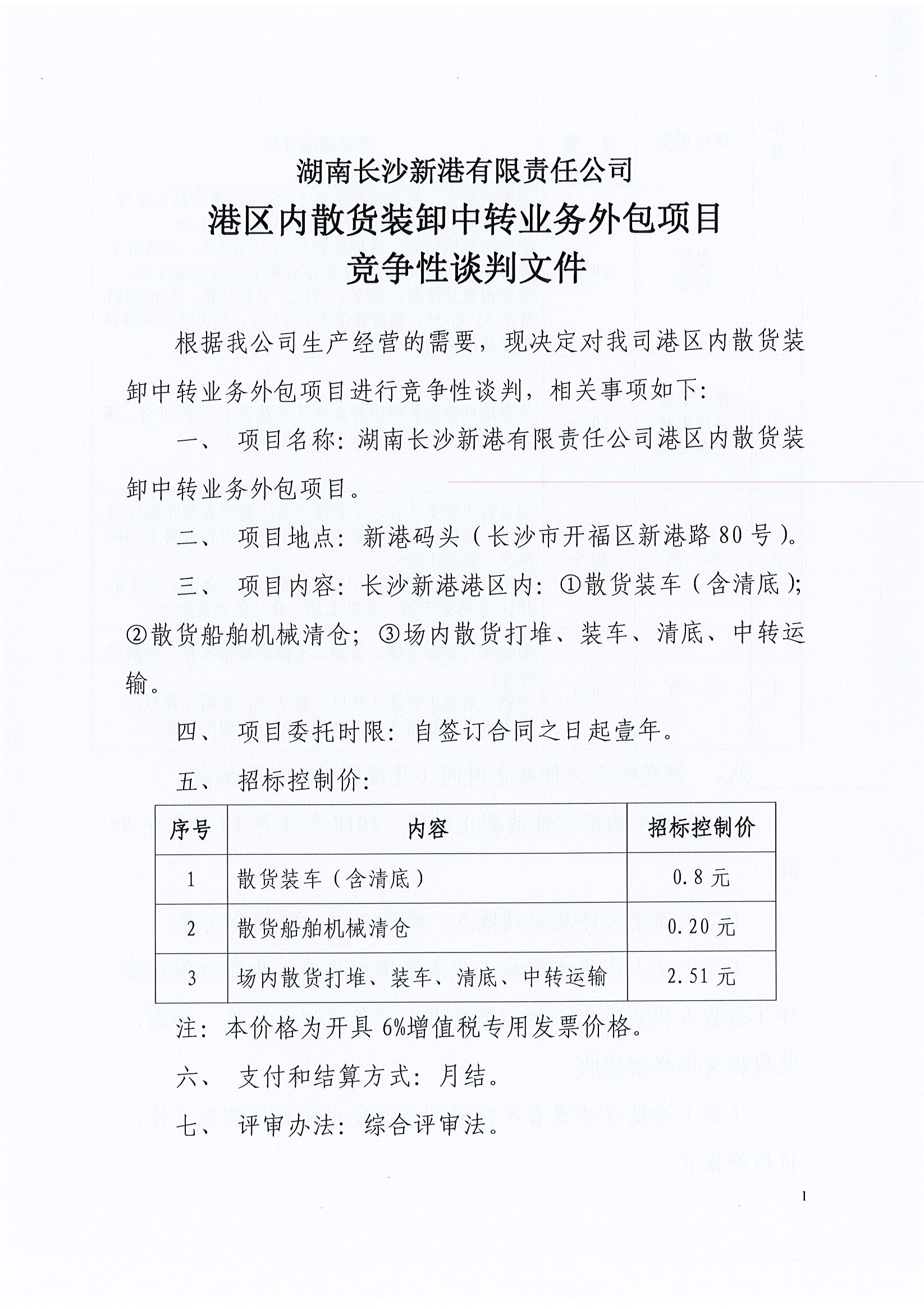 港區(qū)內(nèi)散貨裝卸中轉(zhuǎn)業(yè)務(wù)外包項(xiàng)目競(jìng)爭(zhēng)性談判邀請(qǐng)公告(延期)