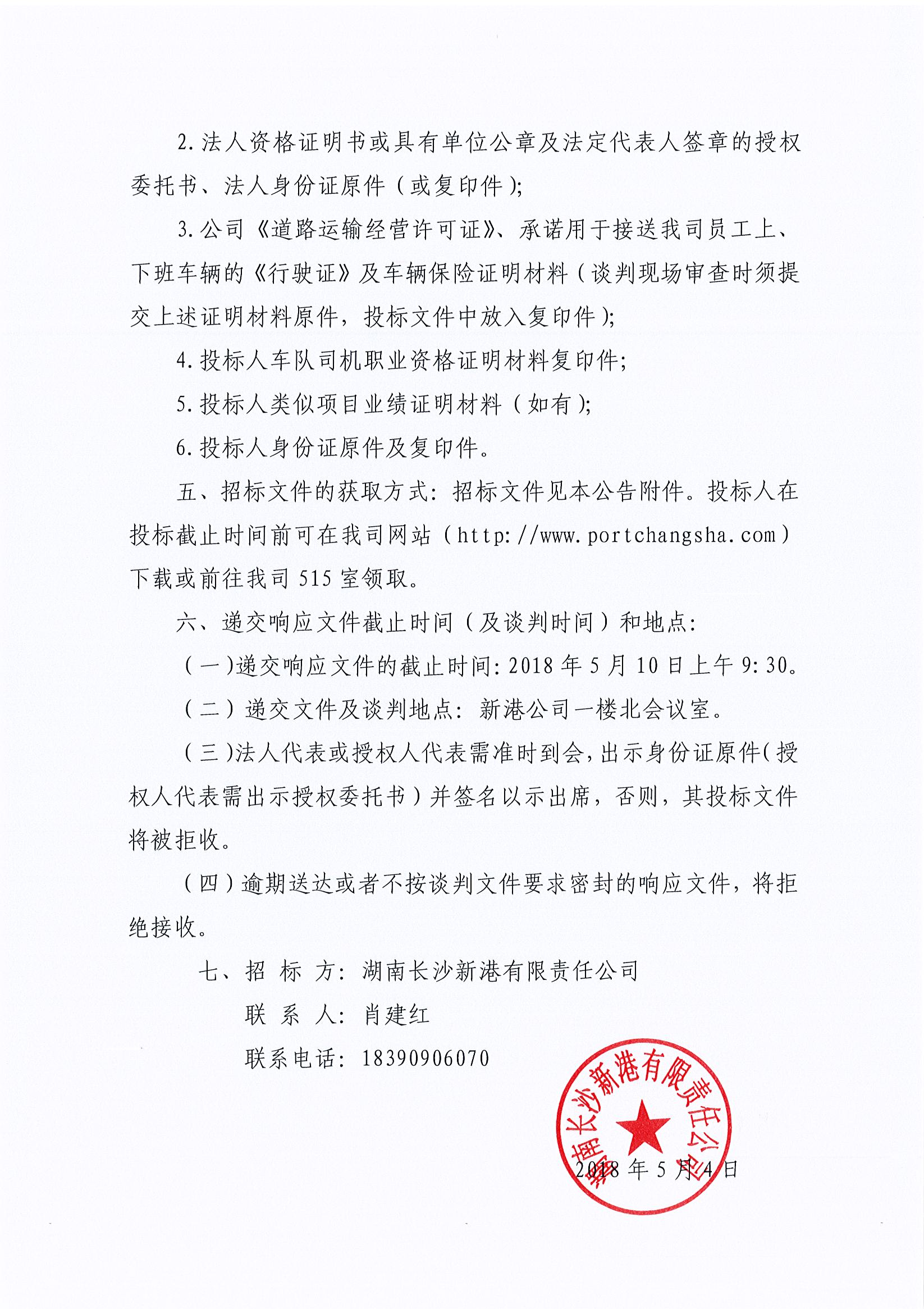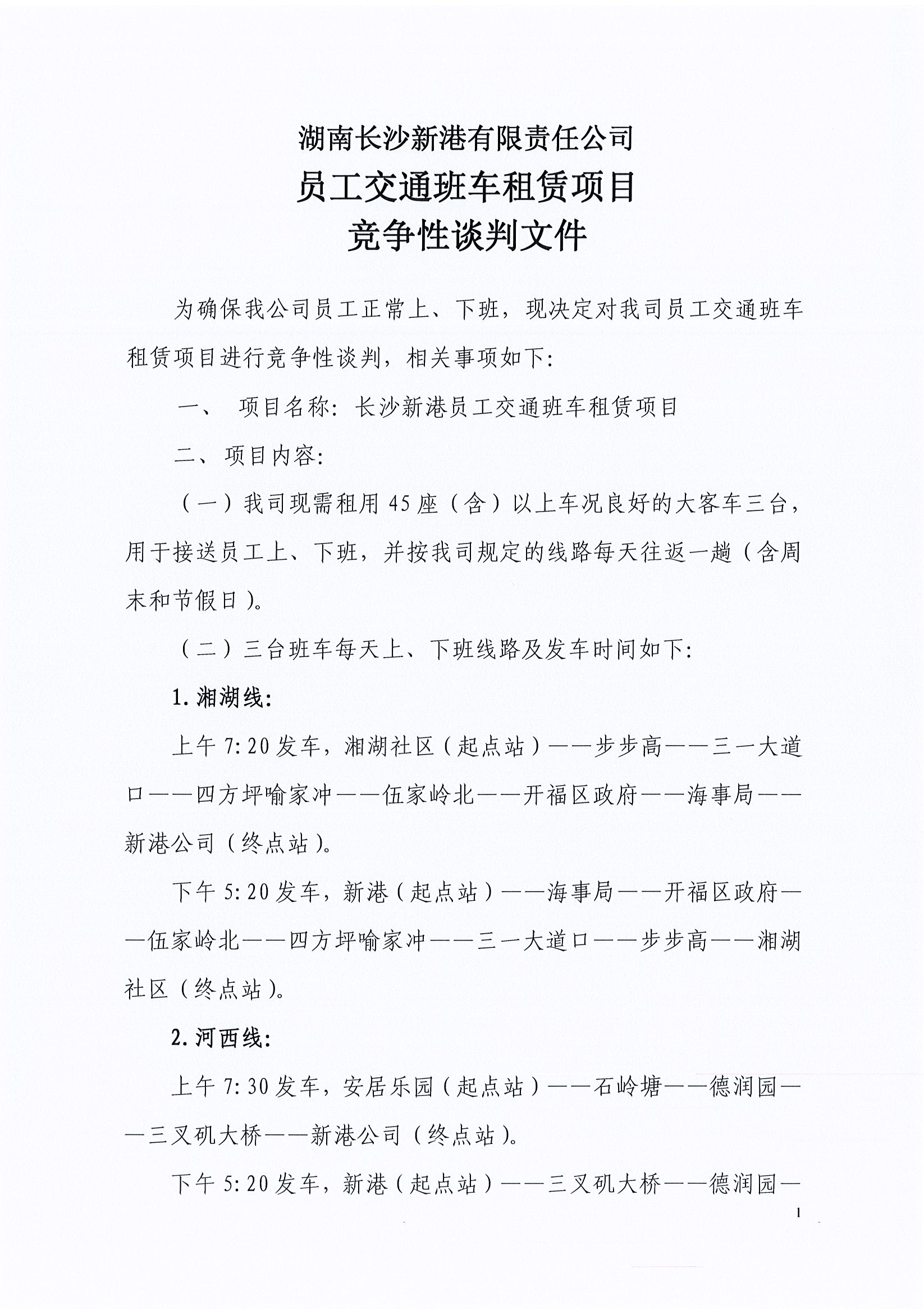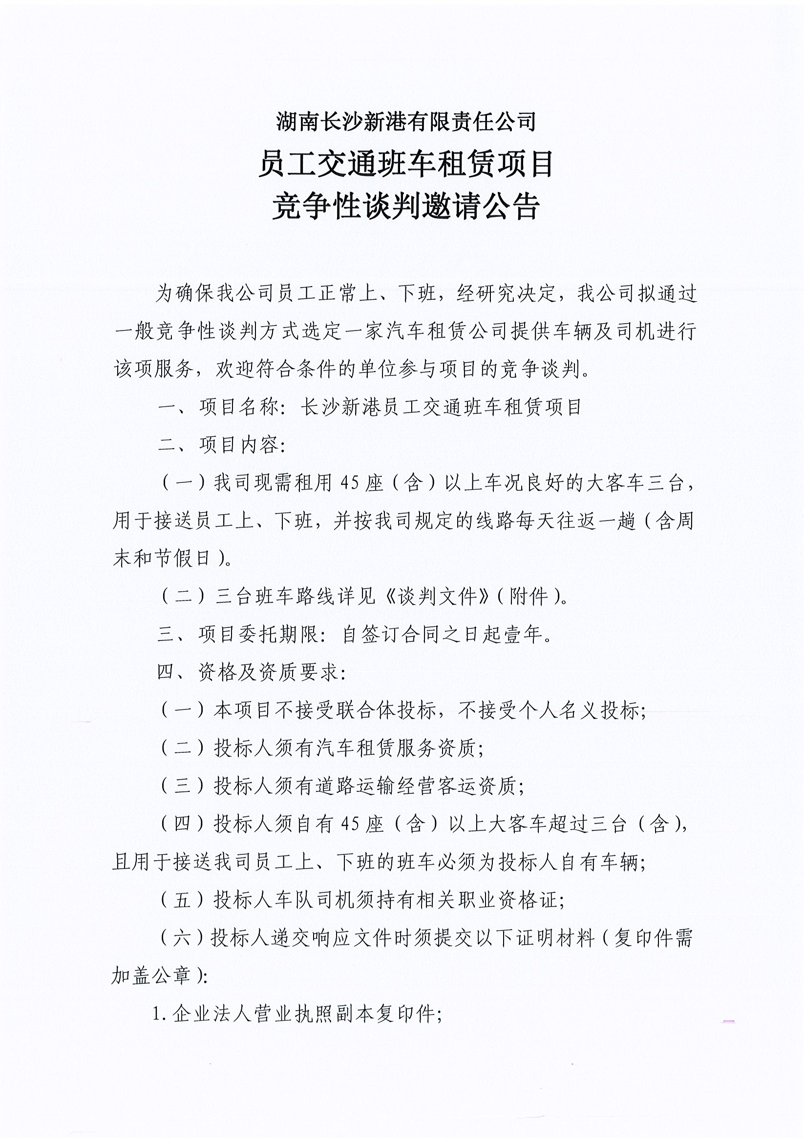 湖南長沙新港有限責(zé)任公司 員工交通班車租賃項(xiàng)目競爭性談判邀請(qǐng)公告