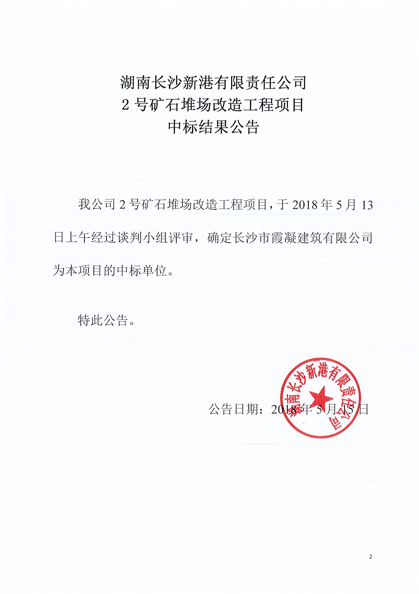 湖南長沙新港有限責任公司 2號礦石堆場改造工程項目中標結(jié)果公告