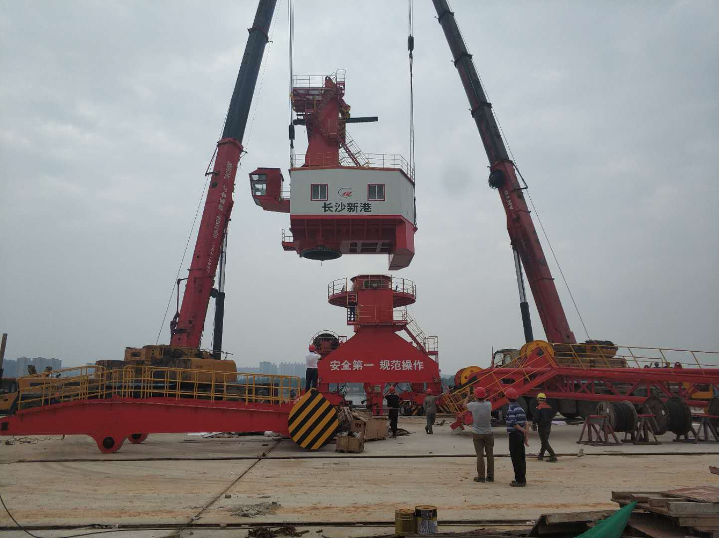 南片生產(chǎn)添助力 門(mén)座式起重機(jī)順利安裝 長(zhǎng)沙港霞凝港區(qū)三期工程上游新建2000噸級(jí)(兼顧3000噸級(jí))多用途泊位2個(gè),滾裝泊位1個(gè)。滾裝泊位目前已完成土建實(shí)體、混凝土道路施工,配套鋼引橋制作安裝、躉船制安錨定及兩者的連接工作,已經(jīng)具備投產(chǎn)條件;多用途泊位主體工程已基本完成,正在進(jìn)行附屬工程掃尾工作。 長(zhǎng)沙港霞凝港區(qū)三期工程上游多用途泊位計(jì)劃配置2臺(tái)門(mén)座式起重機(jī);3月上旬,湖南中鐵五新重工有限公司港機(jī)安裝隊(duì)開(kāi)始安裝,經(jīng)過(guò)一個(gè)多月不懈努力,大車(chē)行走結(jié)構(gòu)、轉(zhuǎn)臺(tái)、臂架、圓通門(mén)架等都已現(xiàn)場(chǎng)組裝完成。5月4日、6日,25t-25m、45t-25m門(mén)座式起重機(jī)順利完成轉(zhuǎn)臺(tái)及臂架等上部結(jié)構(gòu)的合攏,主體結(jié)構(gòu)一次性吊裝成功。在設(shè)備構(gòu)件吊裝前,新港公司組織專(zhuān)家對(duì)吊裝方案的安全性進(jìn)行了專(zhuān)家論證,確?蚣艽a頭承受荷載不大于設(shè)計(jì)荷載,以保證機(jī)械設(shè)備吊裝安全。