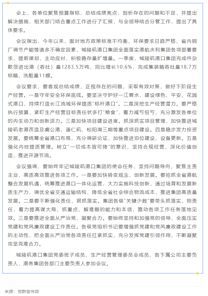 城陵磯港口集團(tuán)召開(kāi)一季度生產(chǎn)經(jīng)營(yíng)分析會(huì)