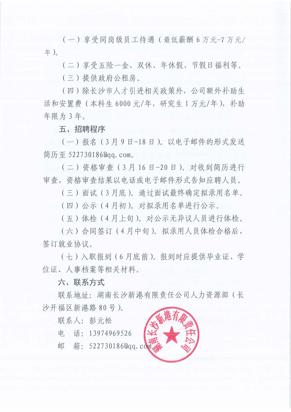 湖南長(zhǎng)沙新港有限責(zé)任公司招聘公告