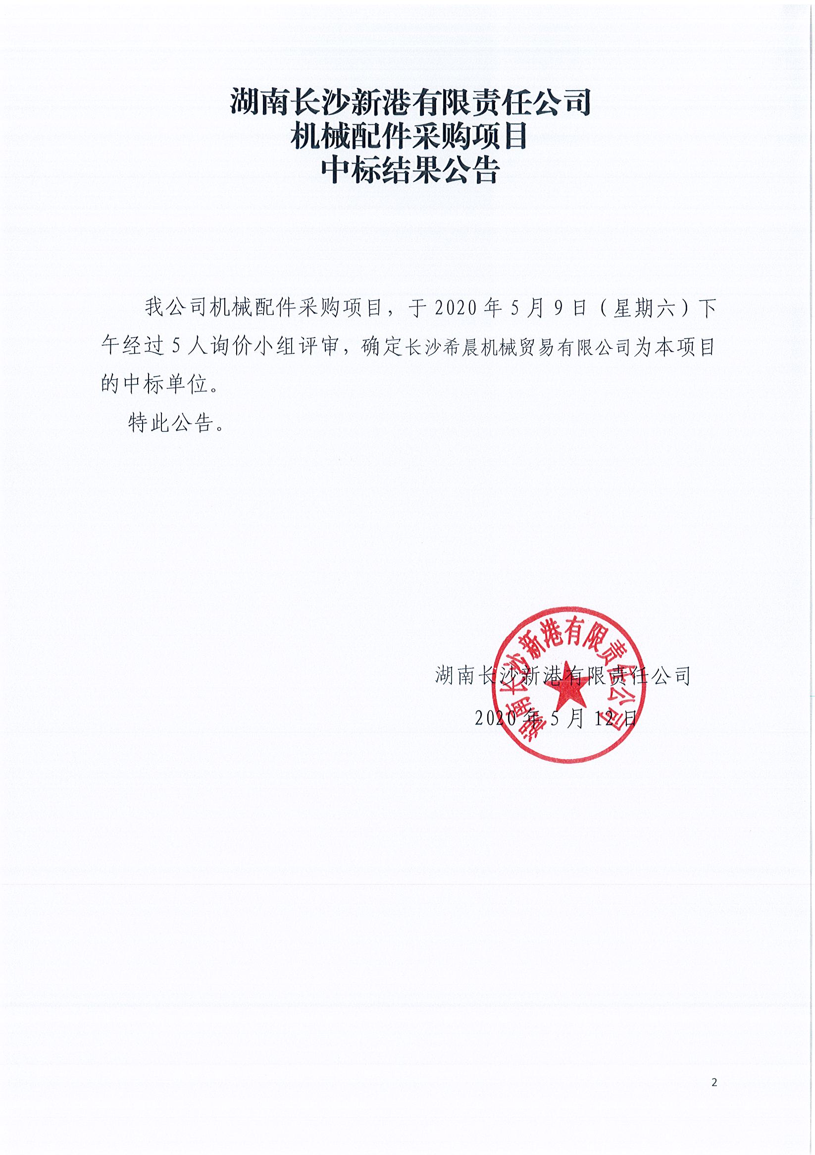 機(jī)械配件采購項目《中標(biāo)結(jié)果公告》