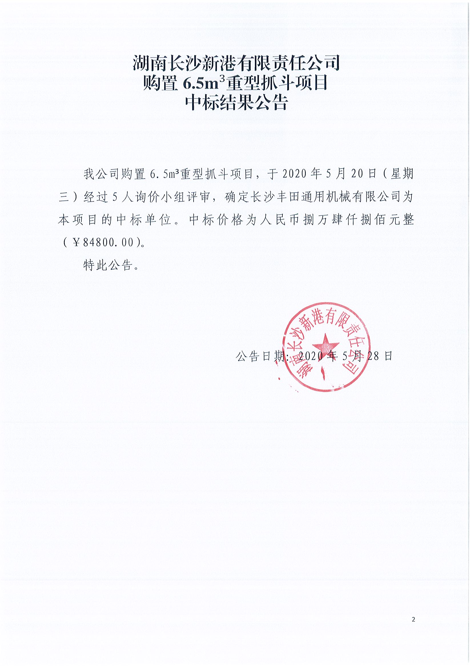 購置6.5m³重型抓斗項(xiàng)目《中標(biāo)結(jié)果公告》