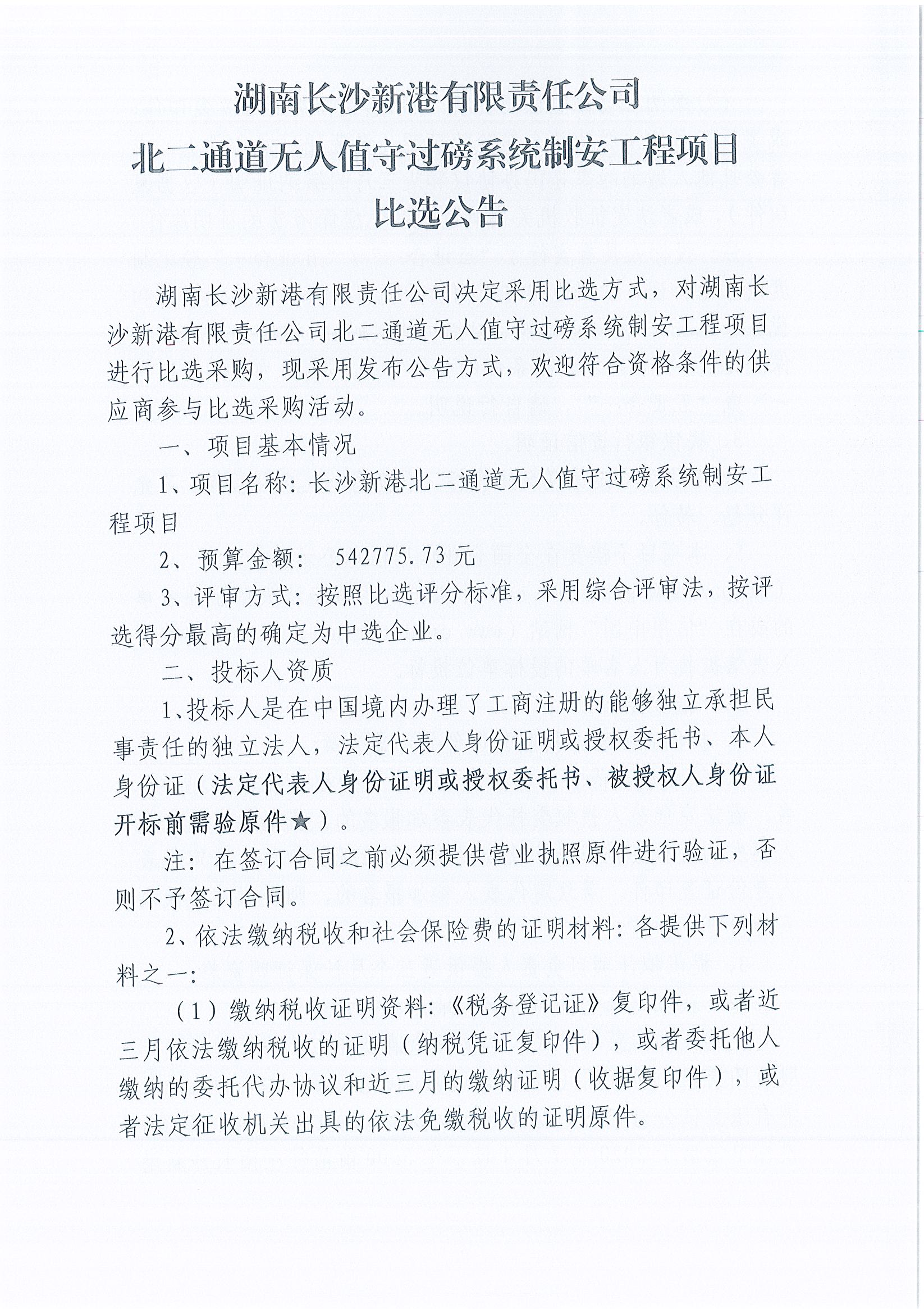 湖南長沙新港有限責(zé)任公司北二通道無人值守過磅系統(tǒng)制安工程項(xiàng)目比選公告