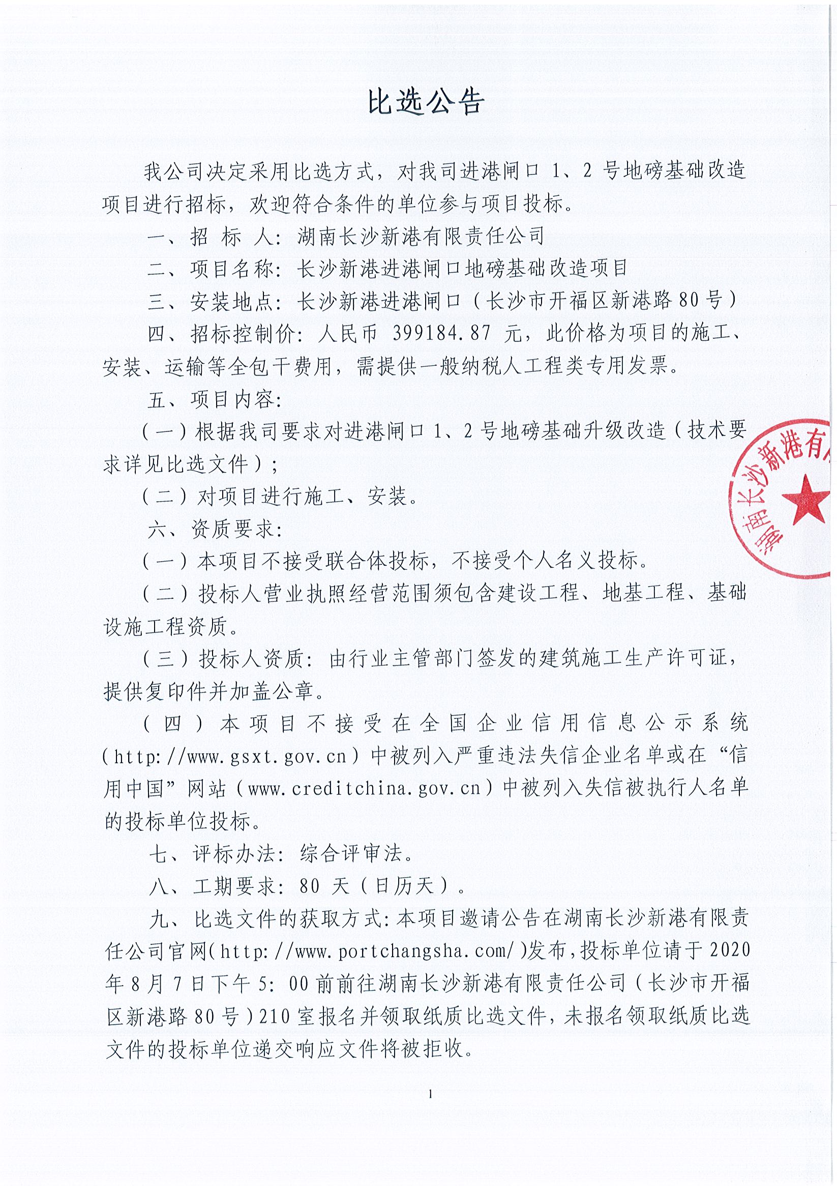 長沙新港進港閘口地磅基礎(chǔ)改造項目比選公告
