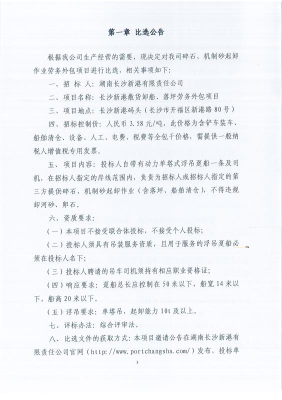 比選公告:長沙新港散貨卸船、落坪勞務外包項目