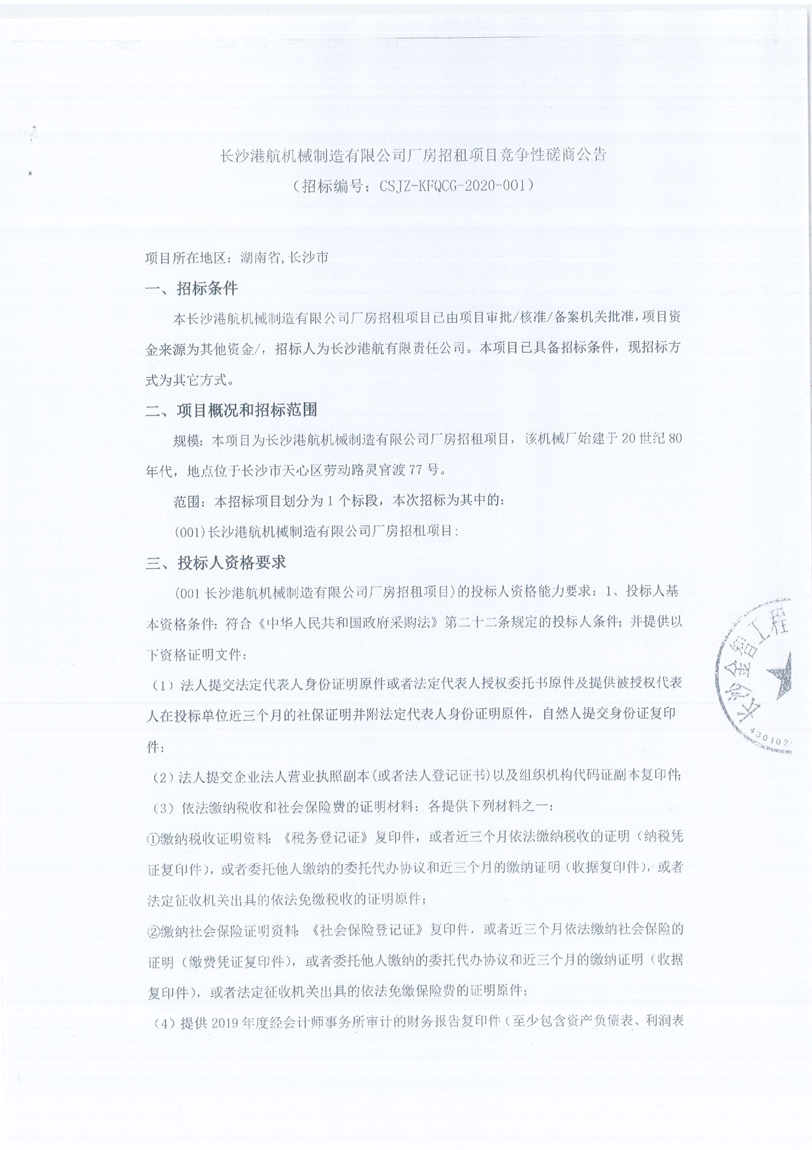 長沙港航機(jī)械制造有限公司廠房招租項(xiàng)目競爭性磋商公告