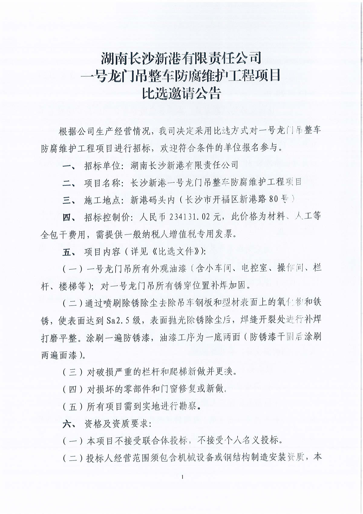 湖南長沙新港有限責(zé)任公司一號龍門吊整車防腐維護工程項目比選邀請公告